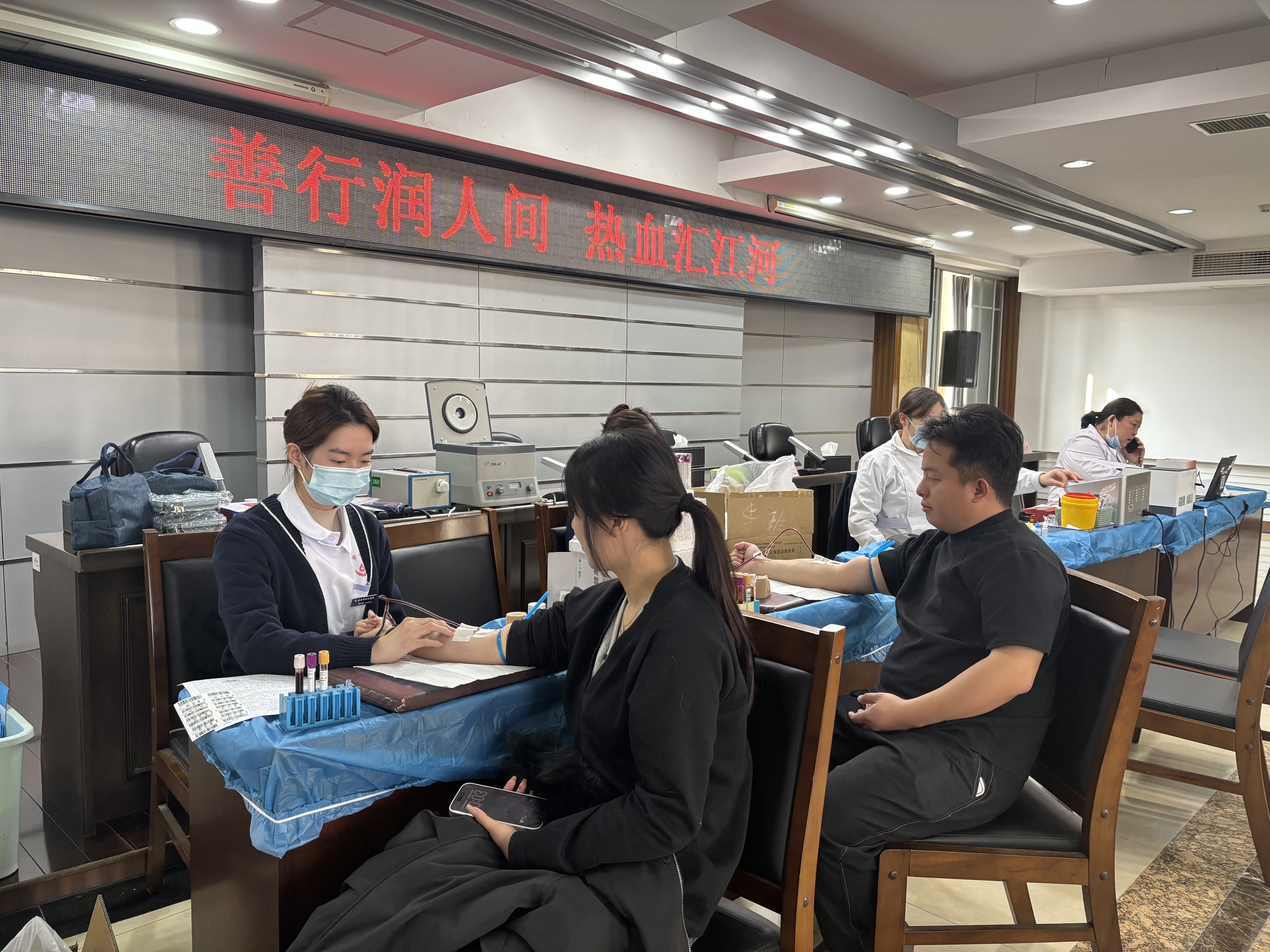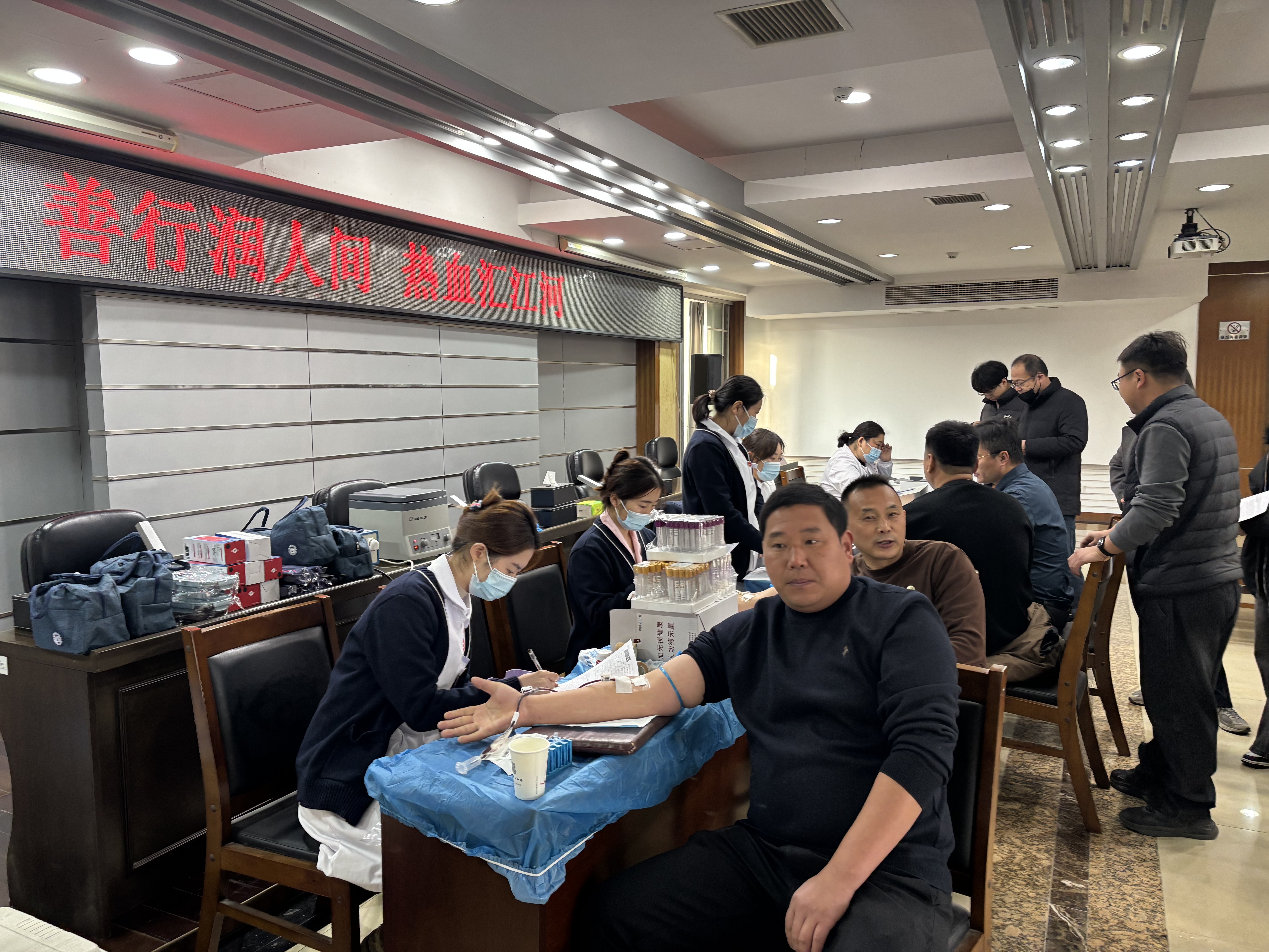 活动现场爱心涌动、温情暖暖。在工作人员引导下,志愿者依次完成信息登记、健康检查、血液初筛等流程,挽袖献出殷红热血。他们中既有多年坚持献血的“老将”,也有初次上阵的“新兵”,虽经历不同,但奉献社会、服务人民的初心同样真挚热烈。