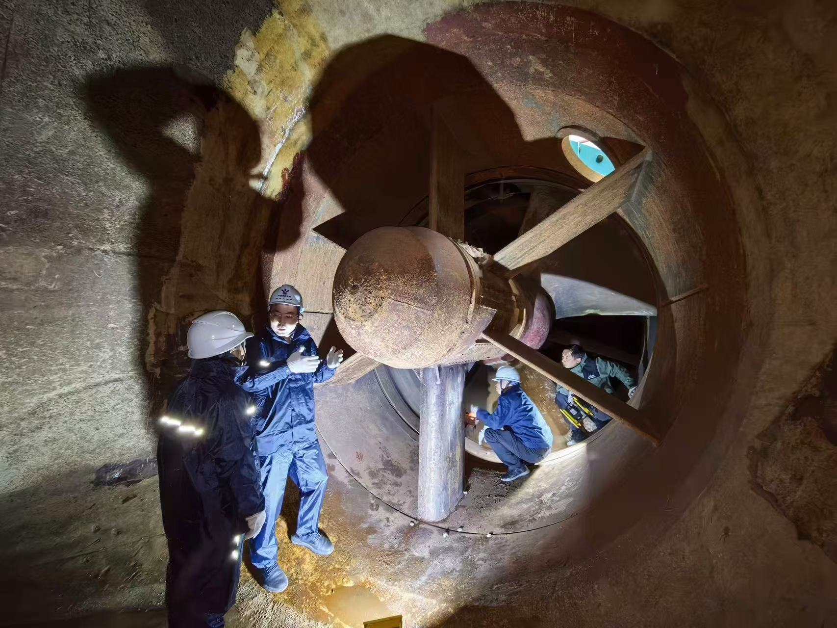 会议采用"实地考察+会议审议"相结合的方式,旨在夯实项目推进基础。会前,审查组深入5号水泵内部,实地查看了5#机组支撑筒打磨及裂缝情况。项目部作为现场监管单位,汇报了方案前准备、施工过程发现问题及现场处理措施等情况,就工艺流程、技术参数等与相关单位进行了现场交流。