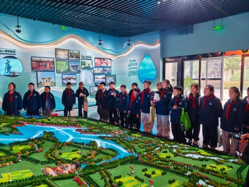 近日,三河闸水情教育基地迎来了一群充满好奇心的小客人——淮安市洪泽区第二实验小学的40名少先队员。伴着胸前随风飘荡的红领巾,少年们跟随讲解员的脚步,踏上一场穿越古今水利的研学之旅。