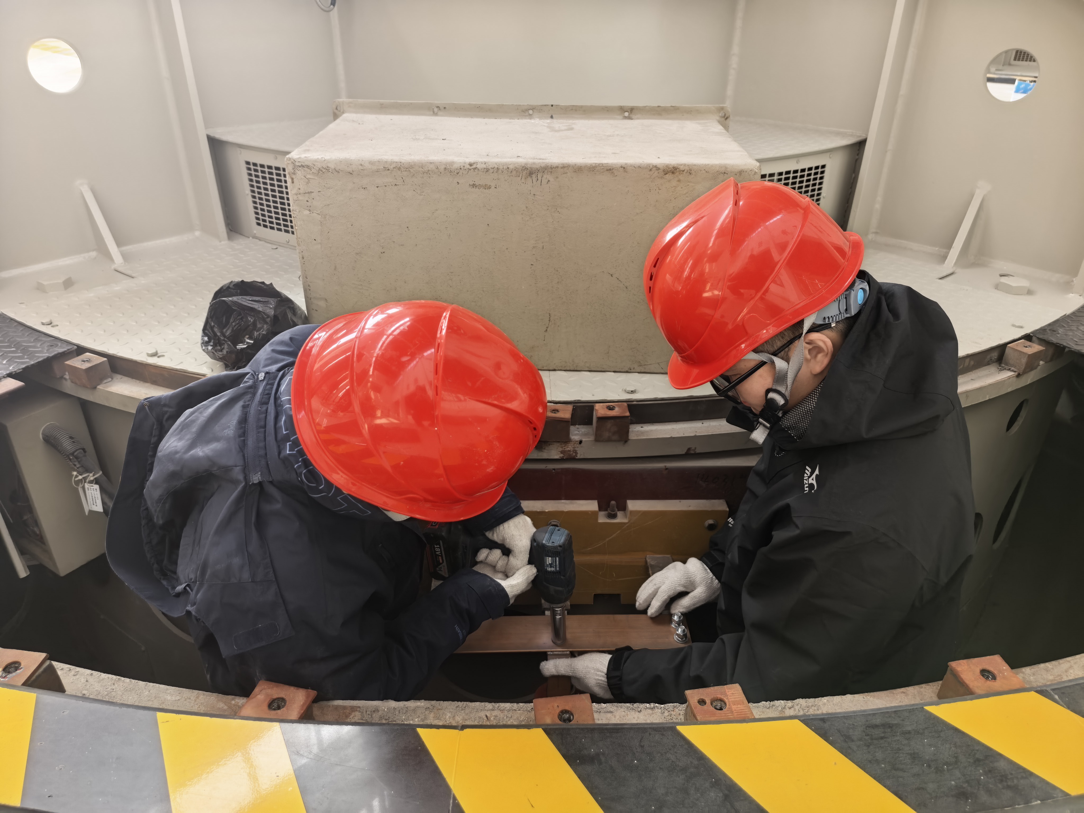管理所重点组织专业技术人员对4台主机组开展水下检查,对流道结构、叶片叶轮、导水圈等关键部位进行严格检测与评估;深入推进电气设备维保工作,完成高低压电气柜保养、主电机检修及引江洞、退水洞启闭机维护与钢丝绳清洗;开展直流系统蓄电池核对性放电试验与自动化系统数据校验,全力保障设备状态“零故障”。