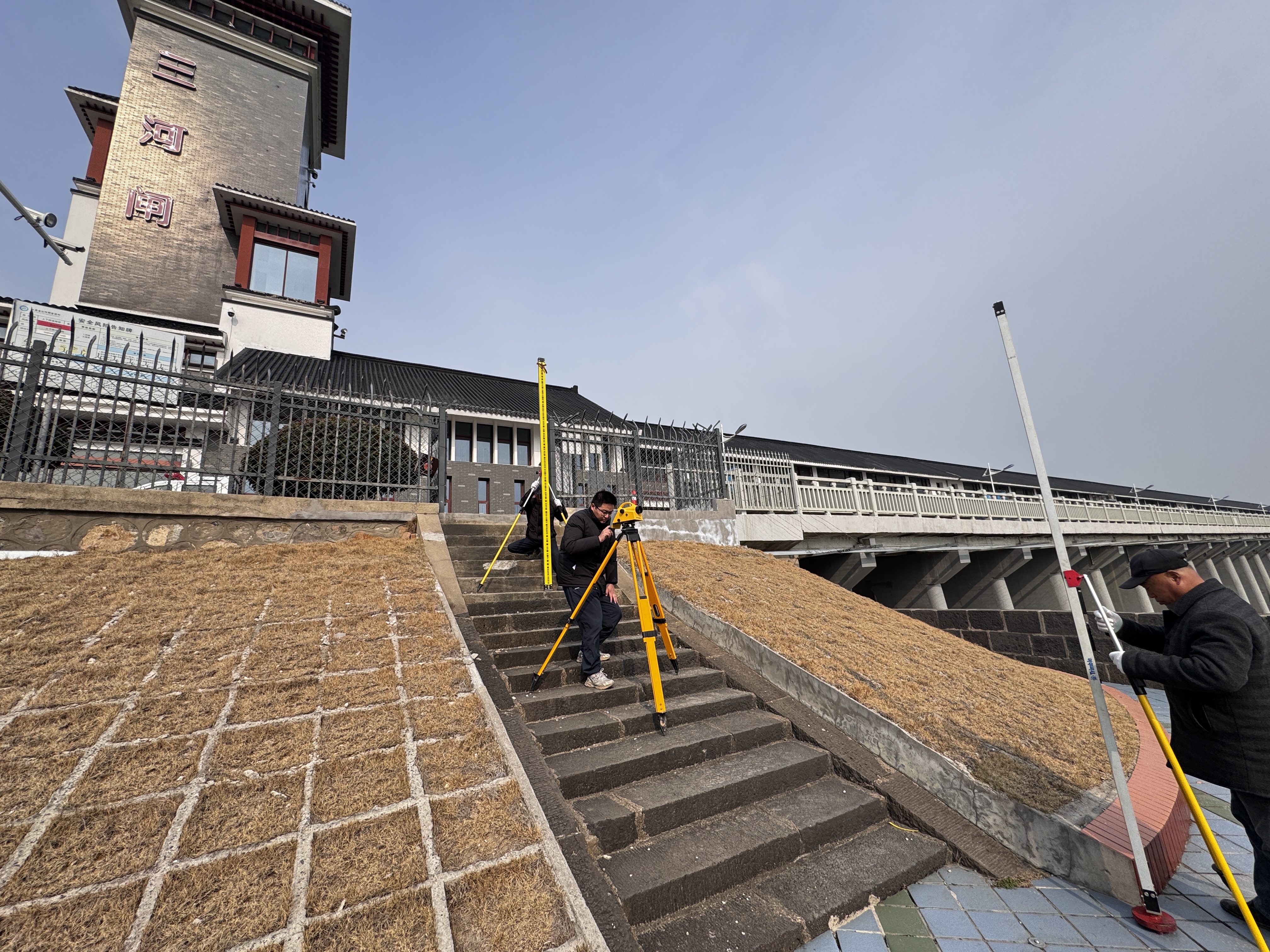 与此同时,工作人员有序开展汛前观测任务,操作水准仪等专业设备开展沉降观测,逐项核对记录,确保数据真实准确,为工程状态评估和安全运行提供坚实支撑。