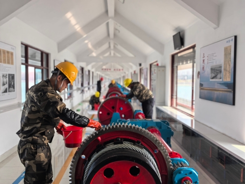 在启闭机房,工作人员对启闭机开展全面细致的检查与维护。老职工现场指导、言传身教,年轻职工认真学习、动手实操,形成了互帮互学的良好氛围。他们先用兆欧表对启闭机电机及配电线路进行绝缘电阻检测,仔细排查电缆接头隐患;随后细致检查齿轮啮合情况,清理油污并补充润滑脂,确保转动部件运转顺畅。